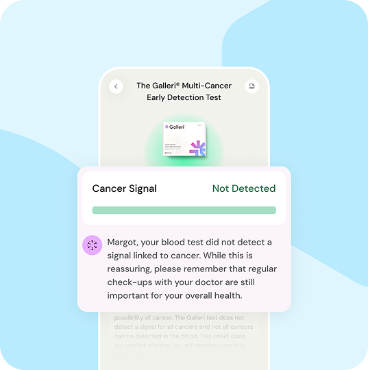 *Evaluated in a large clinical study, the Galleri test screened for a signal shared by 50+ types of cancer